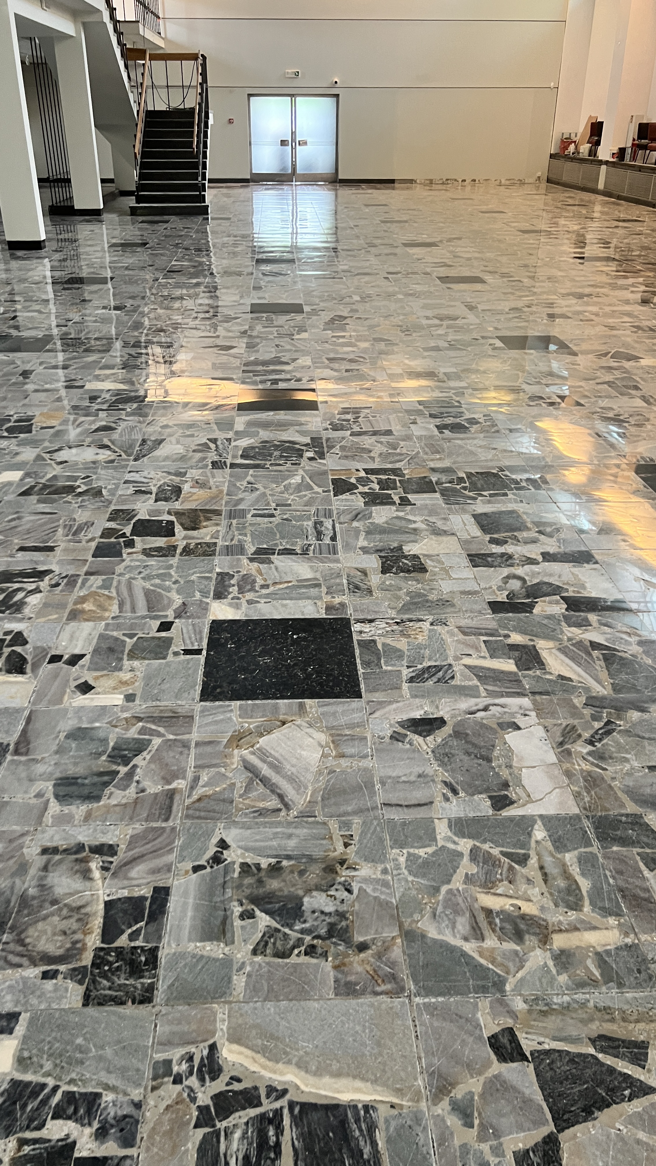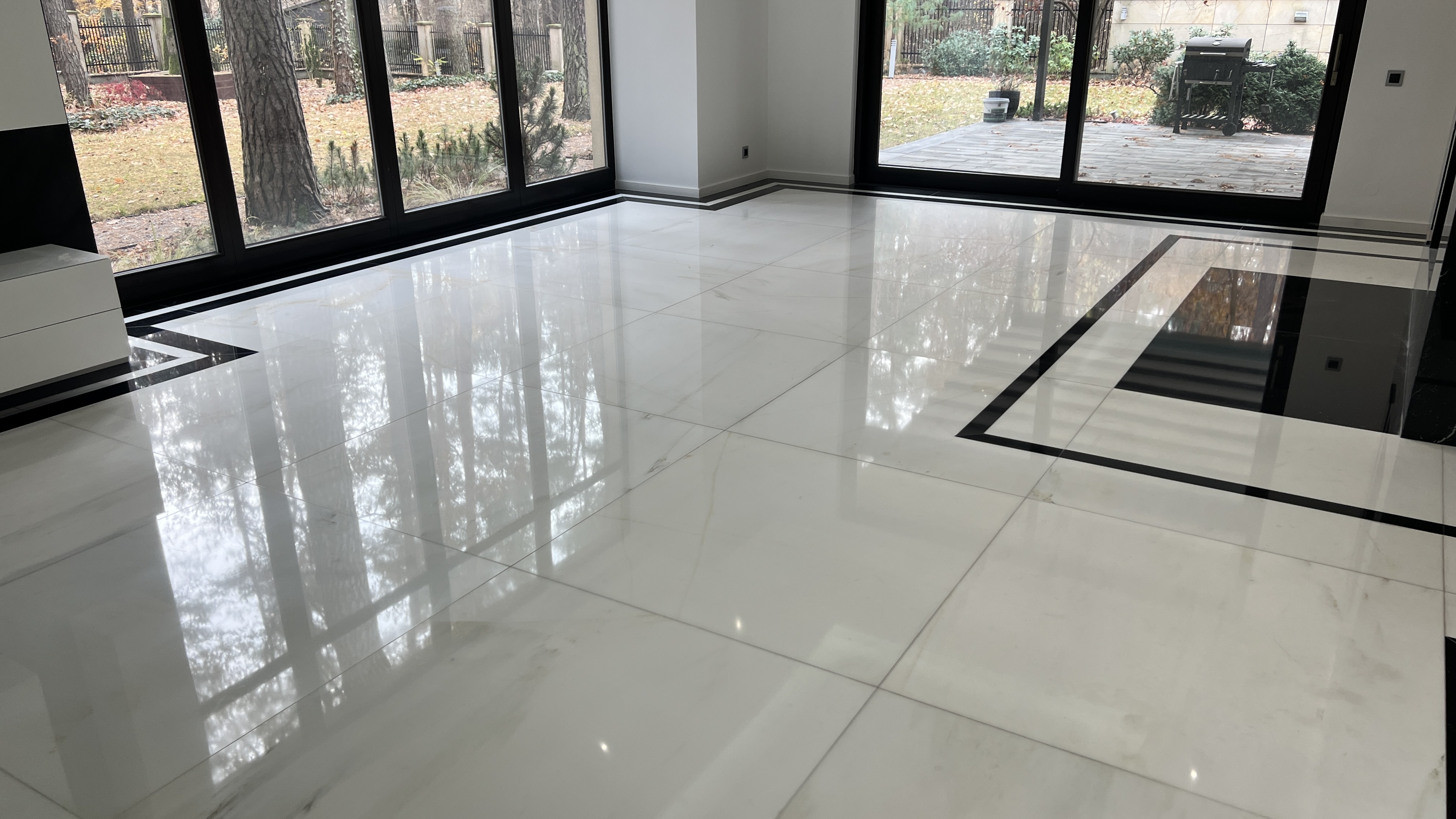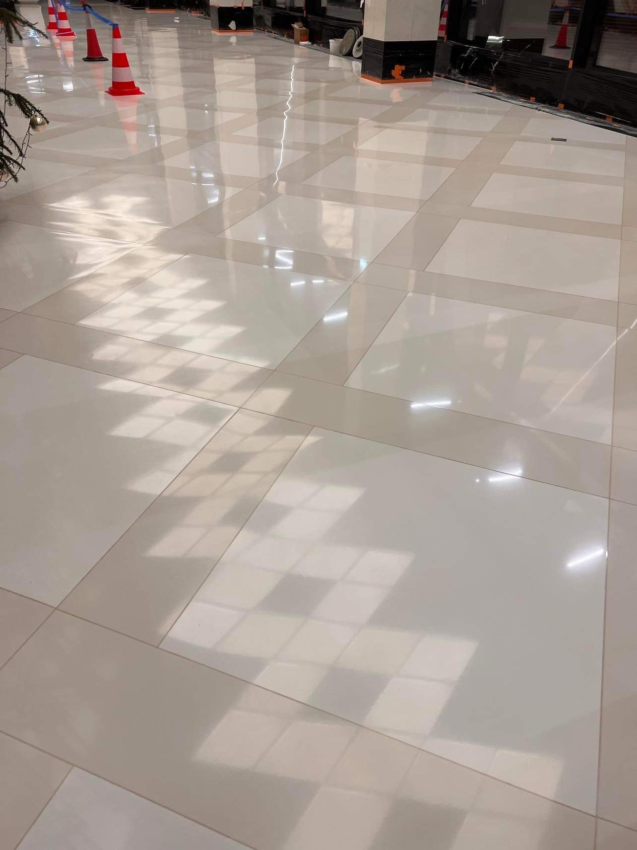 Nadajemy posadzkom lustrzany połysk. Polerowanie zwiększa trwałość i odporność powierzchni na ścieranie.